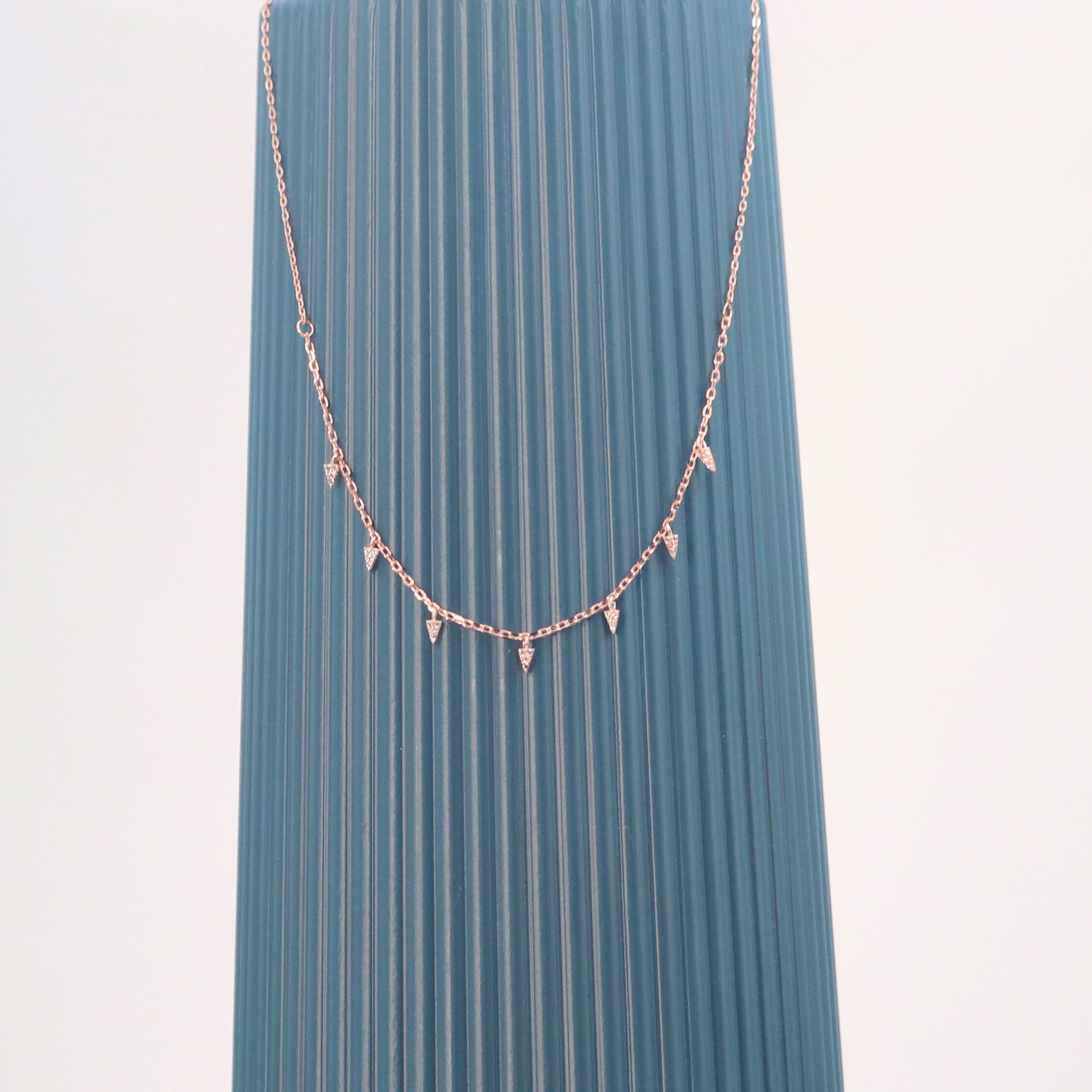 Add a touch of elegance to your jewellery collection with this exquisite dainty crystal drop chain necklace. Crafted in sterling silver with a luxurious rose gold plating, this delicate piece features sparkling crystal drops artfully arranged along a fine chain. The necklace strikes the perfect balance between subtle sophistication and eye-catching glamour, making it versatile enough for both everyday wear and special occasions. Each crystal drop catches and reflects light beautifully, creating a subtle sparkle as you move. The sterling silver base ensures durability while maintaining a lightweight feel, and the rose gold plating adds a warm, contemporary finish that complements all skin tones. This thoughtfully designed necklace arrives with a certificate of authenticity and bears the 925 sterling silver hallmark, assuring you of its quality. Whether worn alone or layered with other necklaces, this piece makes for a meaningful gift that will be treasured for years to come.
