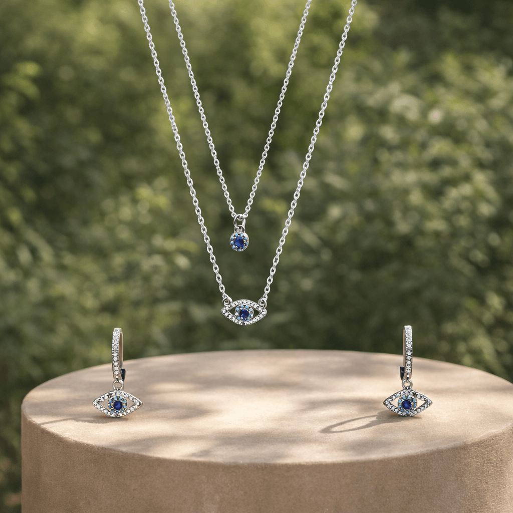 Evil Eye Layered 925 Silver Jewellery Set by Arika Jewellers