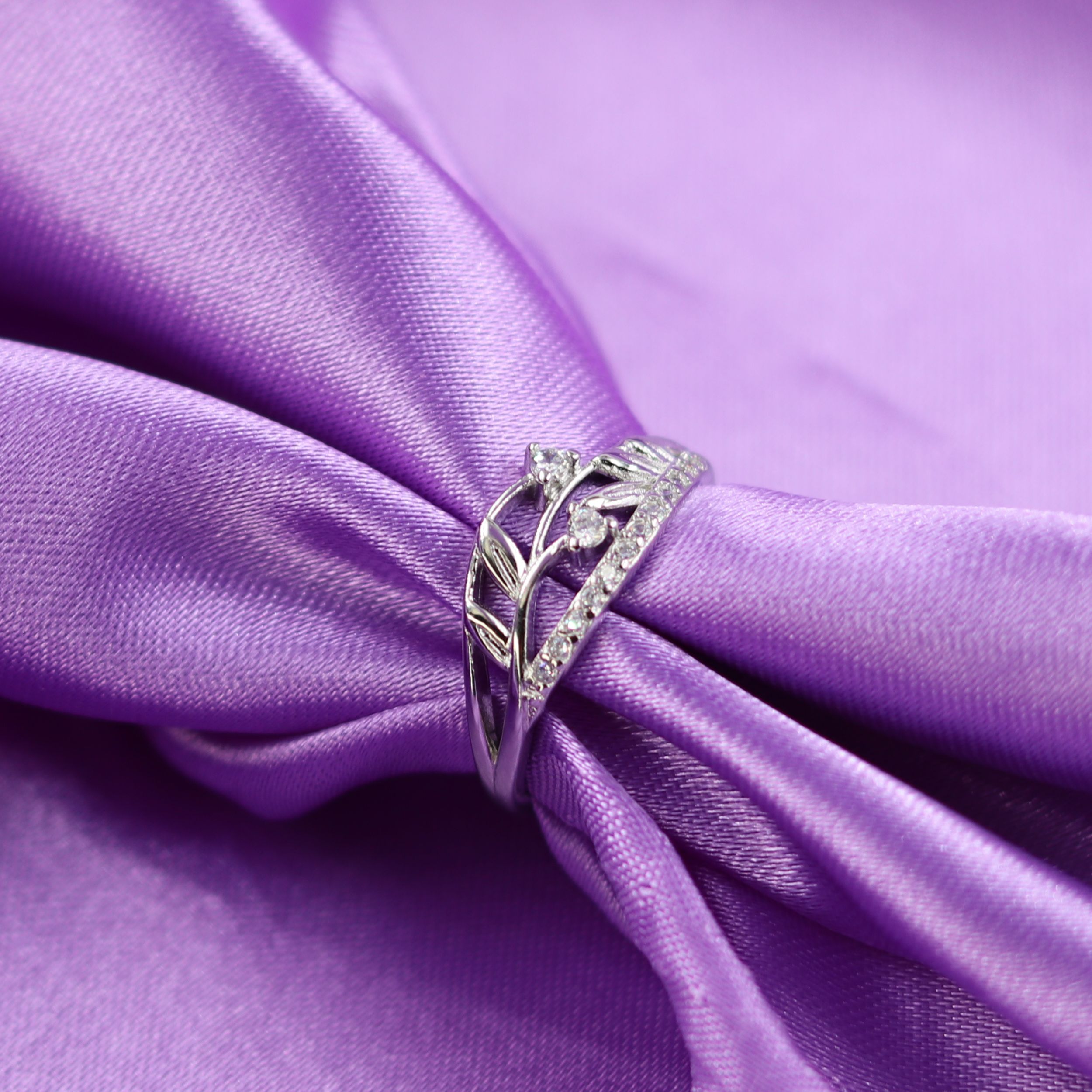 Elevate your jewellery collection with this exquisite Sterling Silver ring featuring an enchanting leaf design. The delicate floral pattern is beautifully crafted with sparkling cubic zirconia stones that catch and reflect light from every angle. This ring showcases intricate sterling silver workmanship with its nature-inspired motif, making it a perfect accessory for both casual and formal occasions. The sophisticated design wraps gracefully around the finger, creating a stunning visual effect that’s both modern and timeless. Crafted from genuine 925 Sterling Silver, this ring comes with a Certificate of Authenticity, ensuring its premium quality and craftsmanship. The versatile design makes it an ideal gift choice for special occasions, whether it’s for your loved ones or a treat for yourself. This elegant piece of jewellery adds a touch of natural beauty and sophistication to any outfit, making it a cherished addition to any jewellery collection..