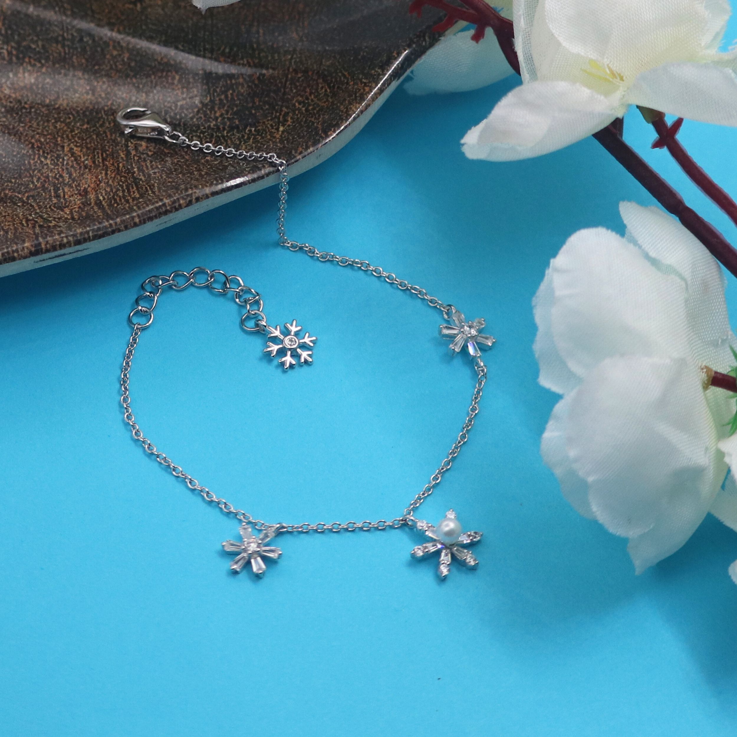 Elevate your jewellery collection with this exquisite silver snowflake bracelet from Arika Jewellers. Crafted with meticulous attention to detail, this stunning piece features delicate snowflake motifs connected by elegant chain links, creating a graceful and timeless design. The bracelet is made from genuine 925 sterling silver, ensuring both quality and durability. Perfect as a thoughtful gift for the special women in your life, this bracelet adds a touch of winter wonderland charm to any outfit. The versatile design makes it suitable for both casual and formal occasions. Each snowflake element sparkles beautifully, capturing light from every angle. The bracelet comes with a Certificate of Authenticity, validating its sterling silver credentials. This enchanting piece serves as an ideal present for girlfriends, sisters, or any woman who appreciates refined jewellery. The classic snowflake theme makes it a particularly cherished accessory during winter festivities, though its sophisticated appeal remains timeless throughout the year.