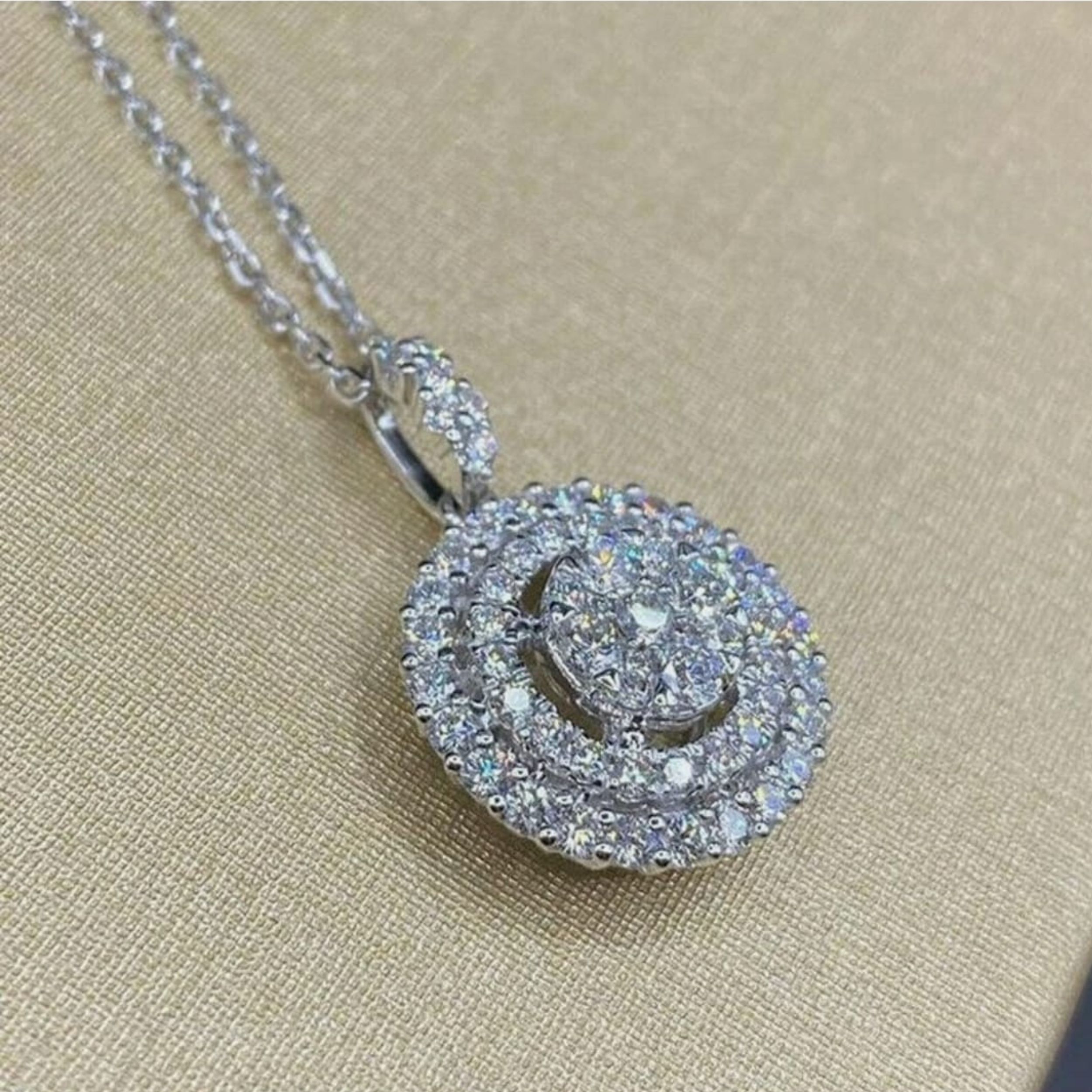 Solitaire Oval Halo Necklace by Arika Jewellers in 925 silver. Elegant double halo crystal design, perfect for gifting and special occasions.