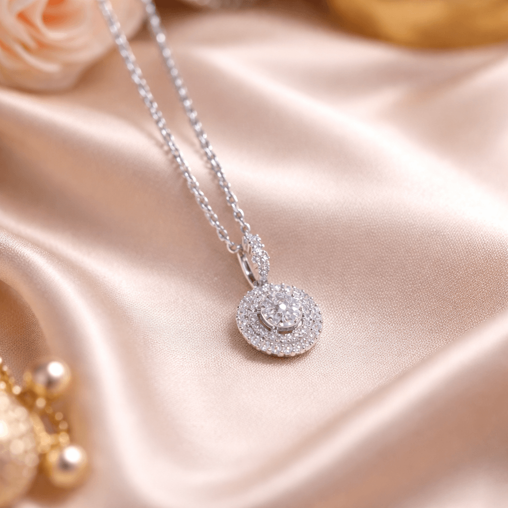 Solitaire Oval Halo 925 Silver Necklace by Arika JewellersElevate your jewellery collection with this elegant Solitaire Oval Halo 925 Silver Necklace by Arika Jewellers, designed to bring timeless sparkle and sophistication. The pendant features a brilliantly crafted oval-shaped centre stone, surrounded by a dazzling double halo of cubic zirconia. Additionally, the layered halo design enhances its brilliance. As a result, this necklace creates a radiant effect that catches light beautifully from every angle. Why Choose This Solitaire Pendant Necklace?The elevated centre stone adds depth and dimension, making the design more eye-catching and luxurious. Moreover, the delicate silver chain complements the pendant perfectly, creating a balanced and refined look. Whether you are styling it for everyday elegance or special occasions, this necklace enhances your outfit effortlessly. Furthermore, its lightweight design ensures comfortable wear throughout the day. Premium Quality & CraftsmanshipCrafted from genuine 925 sterling silver, this necklace ensures durability and long-lasting shine. In addition, each piece bears the authentic hallmark and comes with a Certificate of Authenticity for assured quality. Perfect Gift from Arika JewellersThis timeless necklace makes a thoughtful gift for birthdays, anniversaries, and special celebrations. Also, its classic solitaire design makes it ideal for gifting someone who appreciates elegant jewellery.