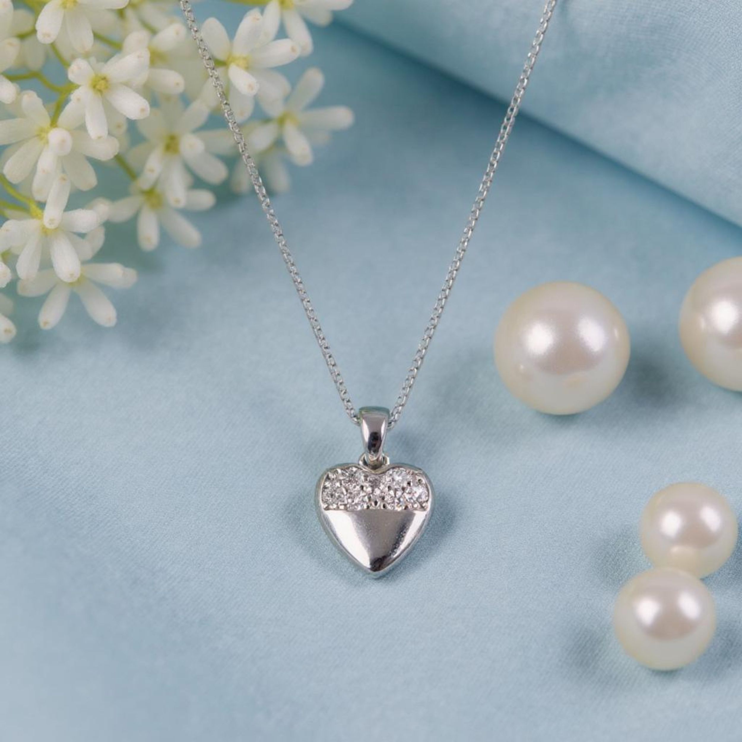 Sparkling Heart Silver Pendant with Box Chain